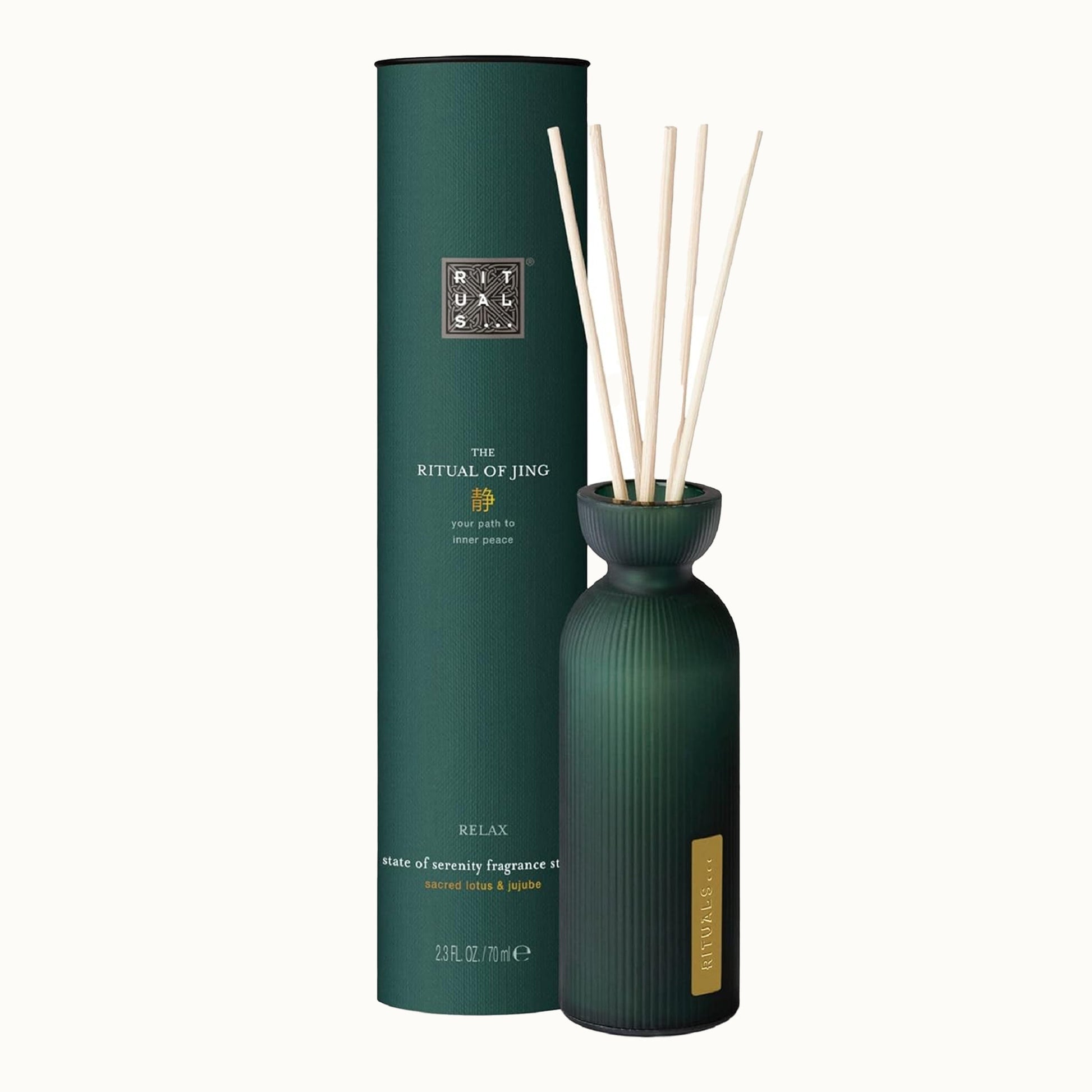 Verwandeln Sie Ihr Zuhause in eine Wohlfühloase mit den Fragrance Sticks aus der luxuriösen The Ritual Of Jing Linie. Diese eleganten Duftstäbchen bieten einen zarten, beruhigenden Duft von Heiligem Lotus und Jujube und sorgen für eine entspannende Atmosphäre in jedem Raum.