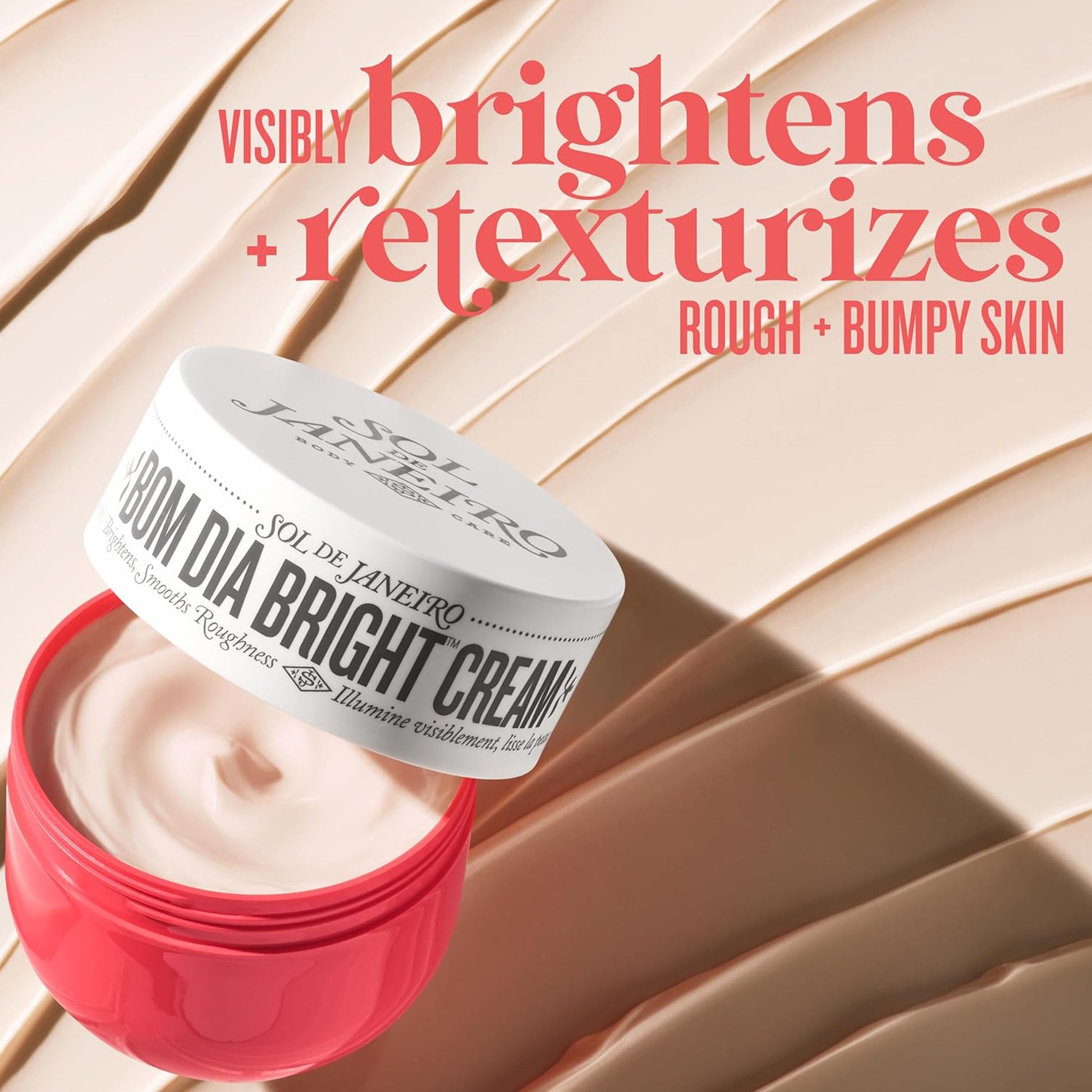Die dermatologisch getestete Bom Dia Bright Cream verleiht Ihrer Haut bei täglicher Anwendung einen gesund strahlenden Teint von Kopf bis Fuß. Ihre reichhaltige, feuchtigkeitsspendende Formel sorgt für ein seidig-glattes Hautgefühl, das Sie jeden Tag aufs Neue genießen werden.